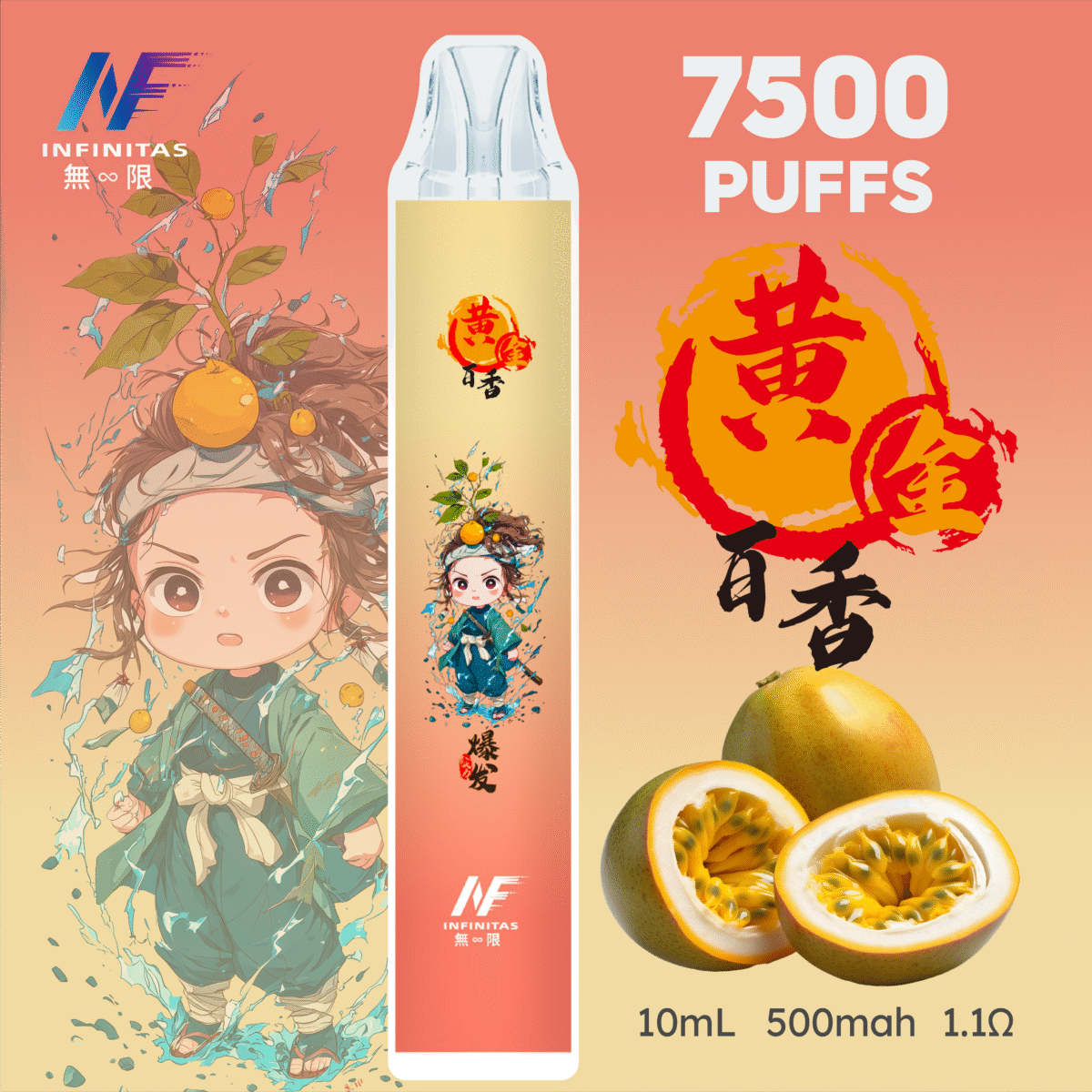 INF 無限7500口拋棄式電子煙這款新品將動漫元素與高性能電子煙技術結合,專為追求持久續航與獨特外觀的用戶打造。內建 500mAh 可充電電池 搭配 10ml 大容量煙油,可提供高達 7500口吸。同時搭載 1.1Ω 網狀線圈,帶來更均勻的霧化效果與還原度極高的口感。